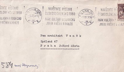 Datováno V Praze 31. července 1960. Psáno na dopisním papíře s hlavičkou chemika. Jedna strana na stroji, podpisy modrým perem. Manželé Heyrovští děkují za zaslané fotografie. Ptají se, zda by je mohli obdržet v metalografickém provedení, děti by rády dostaly jejich kopie. Na odpověď počkají do podzimu. Vloženo v originální obálce s tištěným jménem vědce. Známka, razítka, prošlé poštou. Adresát: Pan architekt Vaněk, Spálená 47, Praha 2 - Nové Město.