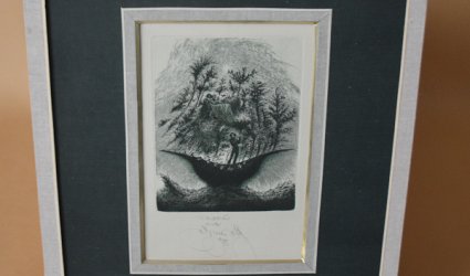 Lept 13 x 10,3 cm. Signováno a datováno dole uprostřed tužkou. Rok 1988. Lepený rám, pasparta, sklo.