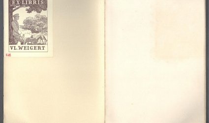 Uherské Hradiště, Družstevní práce, 1935. OBr., 13 (1) s. Soukromý neprodejný tisk pro účastníky VII. sjezdu Skupiny moravských knihomilů v Břeclavi dne 9. června 1935. Typografická úprava Karel Dyrynk. Na předsádce nalepeno Ex Libris Vl. Weigert, zinkografie. Neudaný počet číslovaných výtisků na papíře van Gelder. Tento výtisk č. XXI.