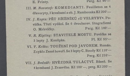 Praha, Družstevní práce, 1932. Slunovrat svazek VIII. OBr., 41 (4) s. Frontispis, obálka, a typografická úprava Jindřich Štyrský. Druhé vydání. Celkem 1000 výtisků, z toho 30 na ručním papíře podepsaných autorem. Tento výtisk obyčejný.