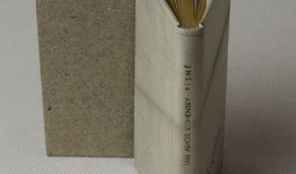 Praha, Karel Reichl, 1928. Špalíček III. Clpg. vazba se slepotiskem podpisu, zlatá ořízka, ručně šitý kapitálek, kartonové pouzdro. 104 (4) s. Vázal Jiří Fogl. Čtyři litografie František Bílek. Typografická úprava František Tichý. Celkem 1125 výtisků, z toho č. I - XXV. tištěny na Zandersu a č. 1 - 100 na imitaci japonu. Tento výtisk na japonu.
