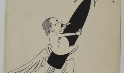 1. Hoffmeister: Lety proti slunci. Originální kresba perem tuší 29,3 x 22,5. Uprostřed napsán text tužkou, nesignováno. 2. Ludvík a Milan Kunderovi. Koláž 11 x 23,2 cm, signováno vpravo dole tužkou, uprostřed napsán název. Nedatováno. Obě kresby v jedné paspartě s fóliemi.