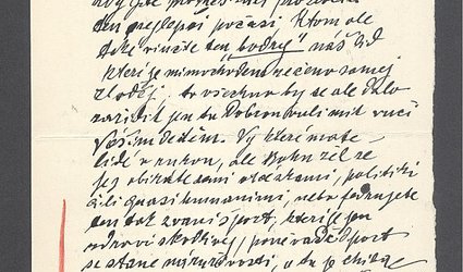 Bez místa odeslání (Praha), datováno 18/III 96. Velmi zajímavý dopis, v němž Marold líčí svůj vztak k nakladatelství Topič, používá malebná a "silná" slova. Děkuje Herrmannovi za zaslání peněz, mohl tak zaplatit svůj dluh. Dále vyjadřuje své vlastenecké názory. Velmi malebně také popisuje život na venkově, kde se práce na litografiích prolíná s venkovským životem a růstem jeho syna. Herrmann si zajímavé pasáže vyznačil červenou pastelkou. Psáno po šesti stranách černým perem.