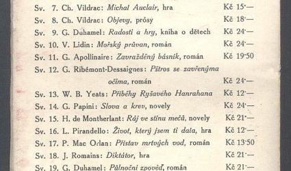 Praha, Dr. Otakar Štorch-Marien, 1928. Edice Aventinum. Knihy dnešku svazek 20. OBr., 87 (1) s. Obálka Adolf Hoffmeister. Překlad M. Hoffmeisterová.