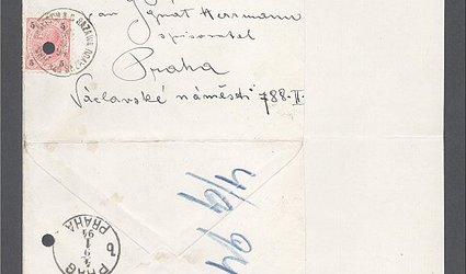 Dopis s originální obálkou. Obálka nalepena na zadní straně dopisu. Adresát: Slovutný Pán, pan Ignát Herrmann, spisovatel, Praha, Václavské náměstí 788.II. Známka, razítka, prošlé poštou. Psáno po dvou stranách černým perem. Bez místa odeslání, datováno 4/9 94. Marold oznamuje Herrmannovi, že přijede ve čtvrtek. Kdyby ho nemohl přijmout, prosí, ať nechá vzkaz v Konviktě. Má-li Herrmann pro malíře finance, bude rád. Na dopise poznámka Herrmanna červeným perem: Marold, Dnespeky 4/9 1894. Na obálce jeho rukou datum modrou pastelkou 4/9 94.