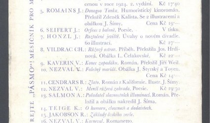 Praha, Jan Fromek, 1926. Odeon svazek 12. OBr., 93 (2) s. Obálka Jiondřich Štyrský a Toyen. Ilustrace ve frontispisu Josef Šíma. Typografická úprava a titulní list Karel Teige. Kromě běžného vydání vyšlo 50 číslovaných a autorem podepsaných výtisků na papíře Japan Banzay. Tento výtisk nečíslován.