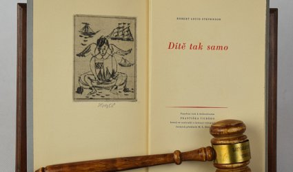 Praha, b.n. (Jitka Fučíková), 1956. OBr., volně vložené archy. 34 (1) s. Tři orig. suché jehly František Tichý. Frontispis signovaný a datovaný tužkou. Vybral a přebásnil Vladimír Thiele. Typografická úprava František Řepa. Pamětní tisk k šedesátinám Františka Tichého. Neudaný počet výtisků. Tento výtisk na ručním papíře Holland Pannekoek.