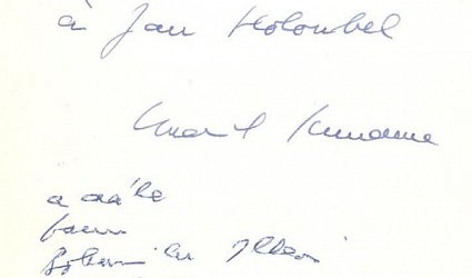 Brno, Skupina Ra, 1947. Edice Ra svazek 7. OBr., volně vložené listy, 14 (1) s. Překlad Pierre Fabricius. Frontispis signovaný tužkou Bohdan Lacina. Na patitulu věnování Ludvíka Kundery z 5.3. 1973. Celkem 300 výtisků.