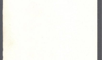 Arch papíru. Vlevo suchá jehla Karla Svolinského 9,5 x 7,4 cm signovaná vpravo dole tužkou. Vpravo báseň Kamila Bednáře signovaná pod textem modrým perem.