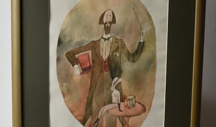 Barevný akvarel 34,3 x 23,3 cm. Signováno a datováno hnědým perem dole uprostřed: J. Valentovi A Born 1982. Rám, pasparta, sklo. Akvarel na ručním papíře z Velkých Losin.