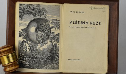 Praha, Mánes, 1936. OBr., 66 s. Přeložil Vítězslav Nezval a Bedřich Vaníček. Obálka a čtyři celostránkové koláže Jindřich Štyrský. Na toitulním listě podpis Václava Zykmunda, člena Skupiny Ra. Podpis zeleným perem, datováno 1936.