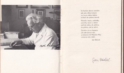 Blansko, n. vl., 1983. Clpl. vazba, pap. obálka vevázána. Nestr. (14 s.). Černobílé fotografie v textu. Úvodní báseň Jan Skácel, signováno černým perem. Ve frontispisu knihvazačův portrét, podepsáno černým perem. Na předsádce nalepeno Ex Libris P.S.