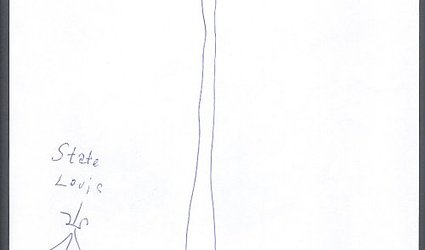 Dvě kresby modrým perem 27,5 x 13,1 cm a 26,8 x 9 cm na obou stranách kancelářského papíru A4. Signováno a datováno modrým perem L. M. 1997.