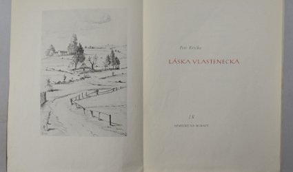 Německé na Moravě, Josef Rýdl, b.d. (1946). OBr., volně vložené archy, nestr. (18 s.). Šest čb. reprodukcí kreseb Josefa Jambora. Na patitulu podpisy Petra Křičky a výtvarníka. Soukromý tisk. Neudaný počet výtisků.