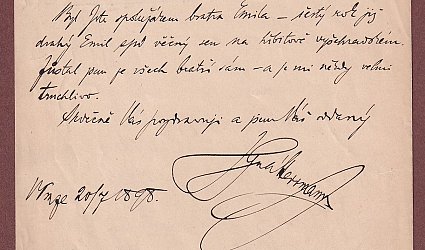 Datováno V Praze 20/7 1898. Psáno na listu dopisního papíru po dvou stranách černým perem. Herrmann děkuje adresátovi za lístek a sděluje mu informace, o které ho žádal. Na závěr vzpomíná na jeho otce a na své dva bratry. Všichni jsou již po smrti.