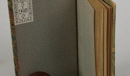 Praha, Vilém Šmidt, 1941. Ratolest sv. 7. Plkož. vazba, ručně šitý kapitálek, zlatá ořízka, pap. obálka vevázána. Kartonové pouzdro. 74 (3) s. Vázal Jindřich Svoboda. Signováno na předsádce značkou a před předsádkou tužkou. Vloženy kartičky se Svobodovými poznámkami. Ilustrace Mikuláš Galanda. Na předsádce vnalepeno exlibris Jindřich a Olga Svobodovi od Oldřicha Menharta. Celkem 150 číslovaných výtisků na holandském papíře Pannekoek. Tento výtisk č. 42.