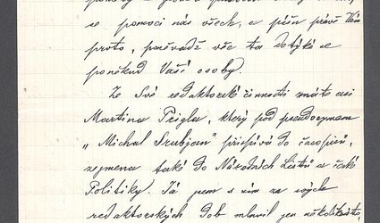 Datováno V Troji u Prahy (Na Havránce) 25/1 1904. Čech obdržel dopis od redaktora Národních listů a Politiky, Martina Prigla. Líčí v něm své ubohé poměry, vyhrožuje zločinem, napadá Herrmanna, Anýže a Hellera. Zároveň žádá Čecha, aby mu sehnal stálé místo. Svatopluk Čech se obává, aby Prigl neudělal nějakou houpost, pokud má opravdu potíže, o kterých píše. Sám mu poslal nějaký obnos. Navrhuje, aby pro Prigla udělali sbírku a aby mu Herrmann pomohl k práci, má více kontaktů, Čech je samotář. Anýžovi a Hellerovi nepsal, nezná jejich adresy. Žádá o diskrétnost. Psáno na papíru z poznámkového bloku. Sedm stran černým perem.