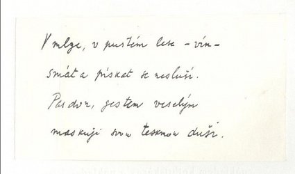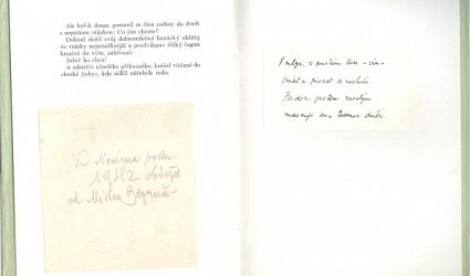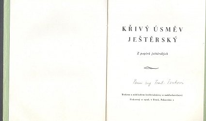 Brno, Pokorný, b. d. OBr., pap. přebal, 28 s. Na titulním listě věnování Petra Bezruče ing. Frant. Šonkovi. Na konci textu nalepen rukopis verše. Vložen lístek potvrzující pravost rukopisu.
