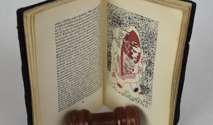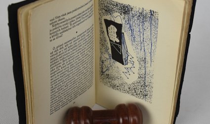 Na sedmi stránkách vyznačena závadná místa. Jedná se buď o výtisk censury a nebo o výtisk určený k soudnímu jednání. Obálka mírně opotřebována.