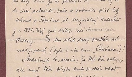 Datováno V Ml. Boleslavi 14. 5. 27. Psáno na dopisním papíře po čtyřech stranách černým perem. Na první straně Herrmannova datumka přijetí: 16. V. 1927. Strejček píše knihu o básnících a milenkách. Rád by měl v knize ilustrace. Marně pátrá po portrétu Mignony, která byla můzou Karla Hynka Máchy. Píše o ní v "Marince" (Obrazy ze života mého). Strejček ví, že existuje portrét Mignony od Schadowa a prof. Antonín Matějček zjistil, že existují dokonce dvě litografie. Jedna z třicátých let od Selba a druhá, pozdější, od H. Senefeldera, syna vynálezce litografie. Strejček pátrá po portrétech už několik let, píše do knihoven, antikvariátů, obchodů se starožitnostmi apod., ale marně. Dokonce ani známý v Lipsku mu nepomohl. Prosí proto Herrmanna o pomoc. Byl by rád, kdyby se v nějakém fejetonu nebo nedělní příloze zmínil, že se obrázek hledá. Je zvláštní, že je spousta Máchovských badatelů, ale nikdo portrét Mignony nemá. Na závěr se omlouvá, že Herrmanna obtěžuje, ale jemu se určitě obrázek podaří sehnat, tak jako kdysi sehnal Topičovi starý kalendář.