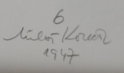 Brno, n. vl., 1985. OBr. s reprodukcí fokalku a aplikovaným štítkem v tiráži. Vloženo třináct fokalků Miloše Korečka. Všechny fokalky signovány, datovány a očíslovány tužkou. Lichá čísla jsou nově nalezené motivy ze starých desek. Sudá čísla jsou reprodukce fokalků ze ztracených desek. Práce ze 40., 70. a 80. let.