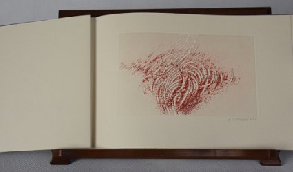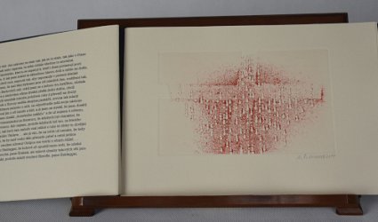 Praha, Martin Dyrynk, 2014. Slza svazek 30. OBr., volně vložené archy, 21 s. Dvě kombinované techniky signované a datované tužkou Alena Bílková. Typografie Martin Dyrynk. Soukromý tisk k Novému roku 2015. V tiráži podpis Martina Dyrynka. Celkem 113 číslovaných výtisků na rukodělném velkolosinském přírodním chamois papíru. Tento výtisk č. 43.