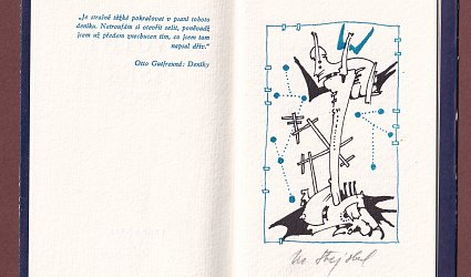 Praha, Spolek českých bibliofilů, 1992. Pupilla svazek 8. OBr., volně vložené archy, 18 s. Ilustrace signovaná tužkou Martin Stejskal. Typografie Martin Dyrynk. V tiráži podpis autora a typografa. Celkem 250 číslovaných a autory podepsaných výtisků na ručním velkolosínském papíře. Tento výtisk č. 236.