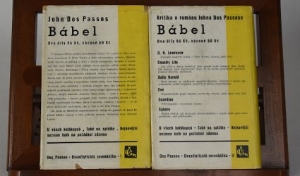 Praha, Čin, 1935. Proud svazek 55. Clpl. vazby s kresbou, pap. přebaly. 292 (2) s. + 301 (3) s. Fotomontážní obálky a návrh vazeb Toyen. Přeložil A.J. Šťastný. Na předsádkách nalepena ex libris Ph. Mg. Vítězslav Čejka.