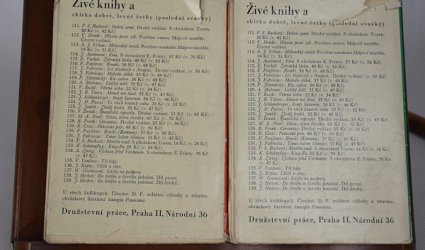 Praha, Družstevní práce, 1936. Živé knihy a svazek 138 a 139, ročník XIV. svazek 8. a 9. OBr., pap. přebaly. 599 (2) s. + 666 (1) s. Typografická úprava, obálky a vazby Ladislav Sutnar. V každé knize vlepeno ex libris Ant. Beringera od Toyen. Celkem dva svazky.