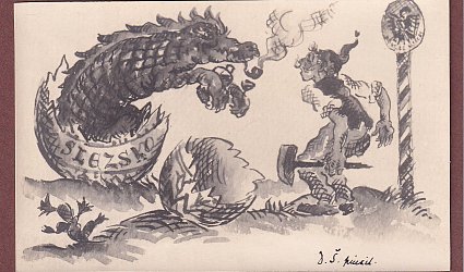 Pohlednice s kresbou od D. Š. Pinxe. Bez údajů. Adresát: Pan Ignát Herrmann v Praze. Na pohlednici napsán verš černým perem, pod ním nalepena ještěrka jako podpis.