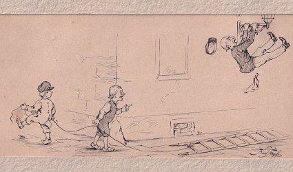 Kresba černým perem 8,8 x 17 cm. Signováno vpravo dole perem, nedatováno. Lepená pasparta.