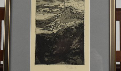 Lept 15,5 x 11 cm. Signováno vpravo dole tužkou, nedatováno. Rám, pasparta, sklo.