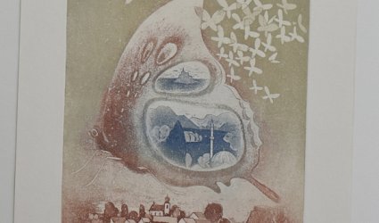 Barevný lept 30 x 21,5 cm. Signováno a datováno vpravo dole tužkou Zdenek Fuksa 85. List č. 47/90. Pasparta.