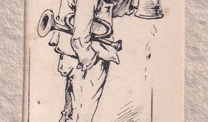 Kresba černým perem 6,5 x 2,9 cm. Signováno vpravo dole perem, nedatováno. Dle Herrmannovy poznámky tužkou rok 1875. Lepená pasparta.