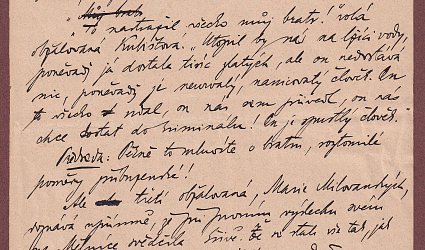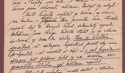 Rukopis pro Národní listy. Nedatováno. Jedenáct stran černým perem. Podepsáno pseudonymem - on.