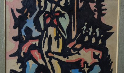 Ručně kolorovaný dřevoryt 24,9 x 19,2 cm. Signováno vpravo dole tužkou, nedatováno. Rám, pasparta, sklo.