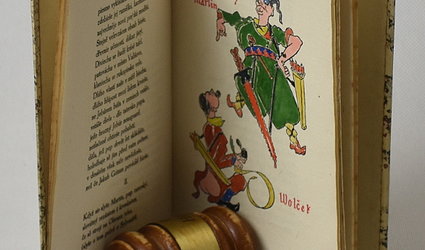 Praha, Veraikon, 1917. Knihovna Veraikonu svazek pátý. Plkož. vazba, zlatá ořízka, kapitílek, kartonové pouzdro. 21 (2) s. Pamflet na boje o pravost rukopisů Královédvorského a Zelenohorského. Ručně kolorované ilustrace Zdeněk Kratochvíl. Celkem 300 nečíslovaných výtisků na ručním papíře.