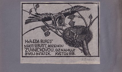 MrPh Eda Bureš s chotí Libuší, rozenou Žuvíckovou, oznamují svůj sňatek. Květen 1918.