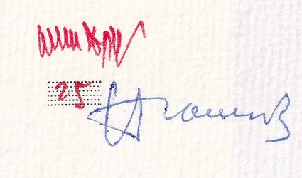 Praha, Spolek českých bibliofilů, 1989. Pupilla svazek 2. OBr., volně vložené listy, 14 (1) s. Dvě barevné ilustrace signované tužkou Adolf Born. Typografická úprava Martin Dyrynk. V tiráži podpis Bohumila Hrabala a Martina Dyrynka. Vyšlo jako příloha Zpráv SČB. Celkem 200 číslovaných výtisků na ručním velkolosínském papíře. Tento výtisk č. 25.