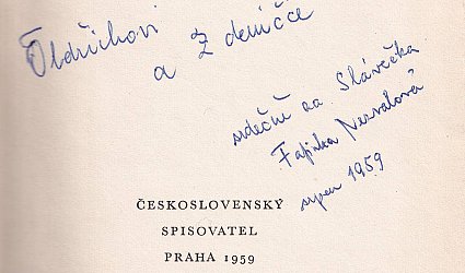 Praha, Československý spisovatel, 1959. Plpl. vazba, 231 (3) s. Typografická úprava, obálka a vazba František Muzika. Na titulním listě věnování manželky Vítězslava Nezvala. Vydání druhé.