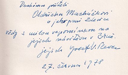 Praha, Albatros, 1974. Clpl. vazba, 40 (2) s. Černobílé fotografické přílohy. K 75. výročí narození autora vybral, uspořádal a redigoval Jindřich Hilčr. Grafická úprava Zdeněk Mlčoch. Neprodejný výtisk pro Klub mladých čtenářů. Na titulním listě věnování autora.