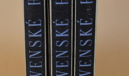 Bratislava, Nakladateĺstvo slovenskej ligy spol. s.r.o., 1937. Clpl. vazby s kresbou, papírové obálky vevázány. 327 s. + 320 s. + 330 s. Černobílé fotografie v textu. Ve třetím díle mapa Slovenska se zakreslenými hrady. Typografická úprava A. V. Hrska. Druhé vydání. Kompletní.