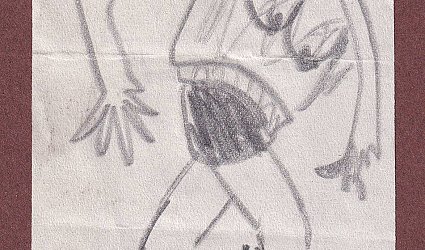 Dvě originální kresby tužkou. 1. 28,5 x 10,5 cm. 2. 19,8 x 5,9 cm. Nedatováno, nesignováno. Vloženo v klipovém rámu. Dle poznámky majitele kreseb: "Dárek od Dr. Dvořáka - "Skládanky" vznikly na cestě 3 přátel - aby se nenudili. Jiřincová. Fremund. Tichý. ".