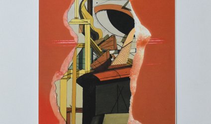 Barevná koláž 26,2 x 15,8 cm. Montováno na karton. Signováno a datováno vpravo dole JK 82. Vzadu na kartonu podpis Jiřího Koláře z roku 1999. Uvnitř koláže vyměnitelné listy, varianty uměleckých děl od Sandra Botticelliho, Paula Cézanna, Františka Kupky - dvě varianty a J. de Chirica.