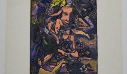 Barevný dřevoryt 17,9 x 12,2 cm. Signováno a datováno vpravo dole tužkou a vlevo dole v desce. Rok 1936. Pasparta, fólie.