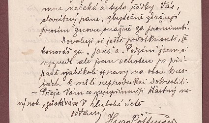 Datováno Praha, 29./12. 1901. Psáno na dopisním papíře po dvou stranách černým perem. Boettinger si všiml, že ve Švandovi dudákovi vychází karikaturní podobizny s karikaturními životopisy osobností. Určitě dojde i na malíře. Žádá, aby byl vynechán, je přece jen ještě žákem akademie a tudíž "dítě školou povinné"...Honorář za kresby Jaro a Podzim obdržel, ale je ochoten je pro reprodukci jakkoli opravit, dokreslit.