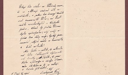 Datováno V Troji 3/1 1905. Psáno na dopisním papíře po dvou stranách černým perem. Čech děkuje za zaslané knihy. Obdivuje spisovatelovo mistrovství, obdivuje jeho talent a váží si jeho přátelství.
