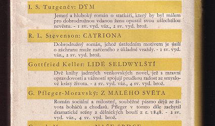 Praha, Melantrich, 1934. Melantrichova knižnice svazek LXXXI. Clpl. vazba, pap. obálka, 208 s. Přeložil Jindřich Hořejší. Obálka a vazba Toyen. Kromě běžného vydání vyšlo 10 číslovaných výtisků na ručním papíře Vergé Blanc a 20 výtisků na imitaci japanu. Tento výtisk na obyčejném papíře.