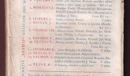Praha, Jan Fromek, 1925. Odeon svazek 3. OBr., 142 (1) s. Přeložila Jaroslava Fastrová. Obálka Karel Teige a Otakar Mrkvička. Vyšlo 50 číslovaných výtisků na papíře Japan Banzay. Tento výtisk nečíslován.