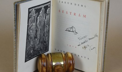 Tasov na Moravě, Pavla Kytlicová, 1924. Clpg. vazba s ražbou a zlacením, zlatá ořízka, kapitálek. Papírová obálka vevázána. Vázal Jenda Rajman. Dřevoryty, ilustrace a obálka František Bílek. Na patitulu podpis Jakuba Demla.